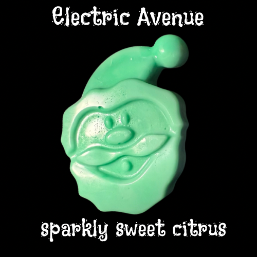 Electric Avenue* (Santa Claus/Green) Zesty lemon and lime oils open the fragrance with a tart, juicy sparkle. At the heart, jasmine and tonka absolutes weave a lush, velvety floral layer. A grounding base of sandalwood and ylang ylang imparts a smooth, resinous warmth with a hint of sultry sweetness.