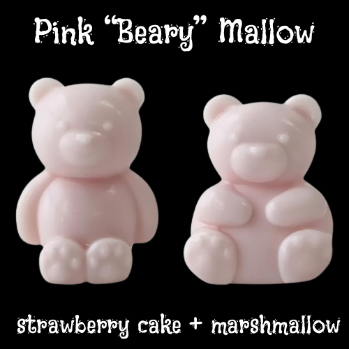 Pinkberry-Mallow (Teddy Bear/Pink) -Soft and squishy marshmallows rolled in pink sugar crystals. Strawberry buttercream frosting spread upon layers of spongy white cake. Vanilla wafers dunked in strawberry milk. This "BEARY" delicious blend is the PINK of perfection! (Bear Shape May Vary)