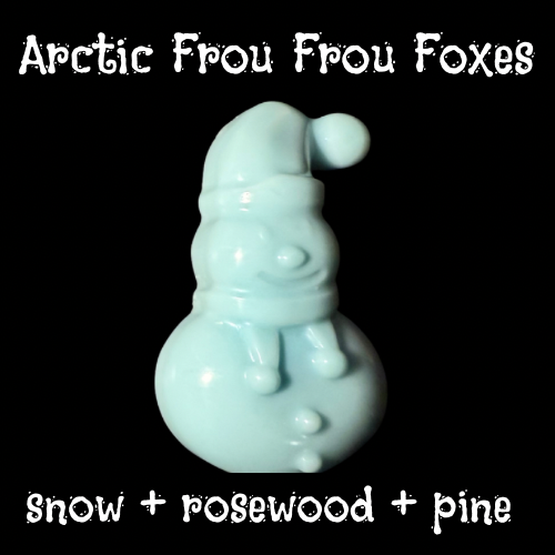 Arctic Frou Frou Foxes (Snowman/Baby Blue) - We've added an Arctic freeze of peppermint and spearmint to our original scent, Frou Frou Foxes. Wild geranium and rosewood add botanical floral accords. Verdurous notes of eucalyptus, cypress, and pine are darkened with dashes of black pepper and ground fennel seed. A base of velvety musk and creamy sandalwood grounds the earthy elements. The combination of woodsy and green aromatics evoke the feel of a nighttime forest.