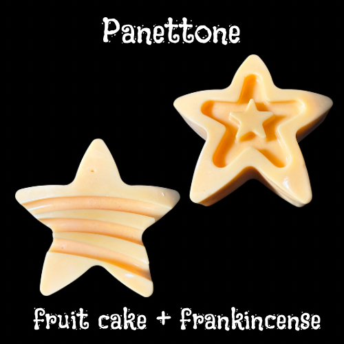 Panettone* (Reindeer or Star/Orange) -A festive scent created to capture the famous Italian fruit cake. Golden sultanas, succulent red currants, tart cranberries, and juicy apricots combine for a sweet and tart scent. Cheery bergamot and grounding olibanum delight the senses. (Star Shape May Vary)